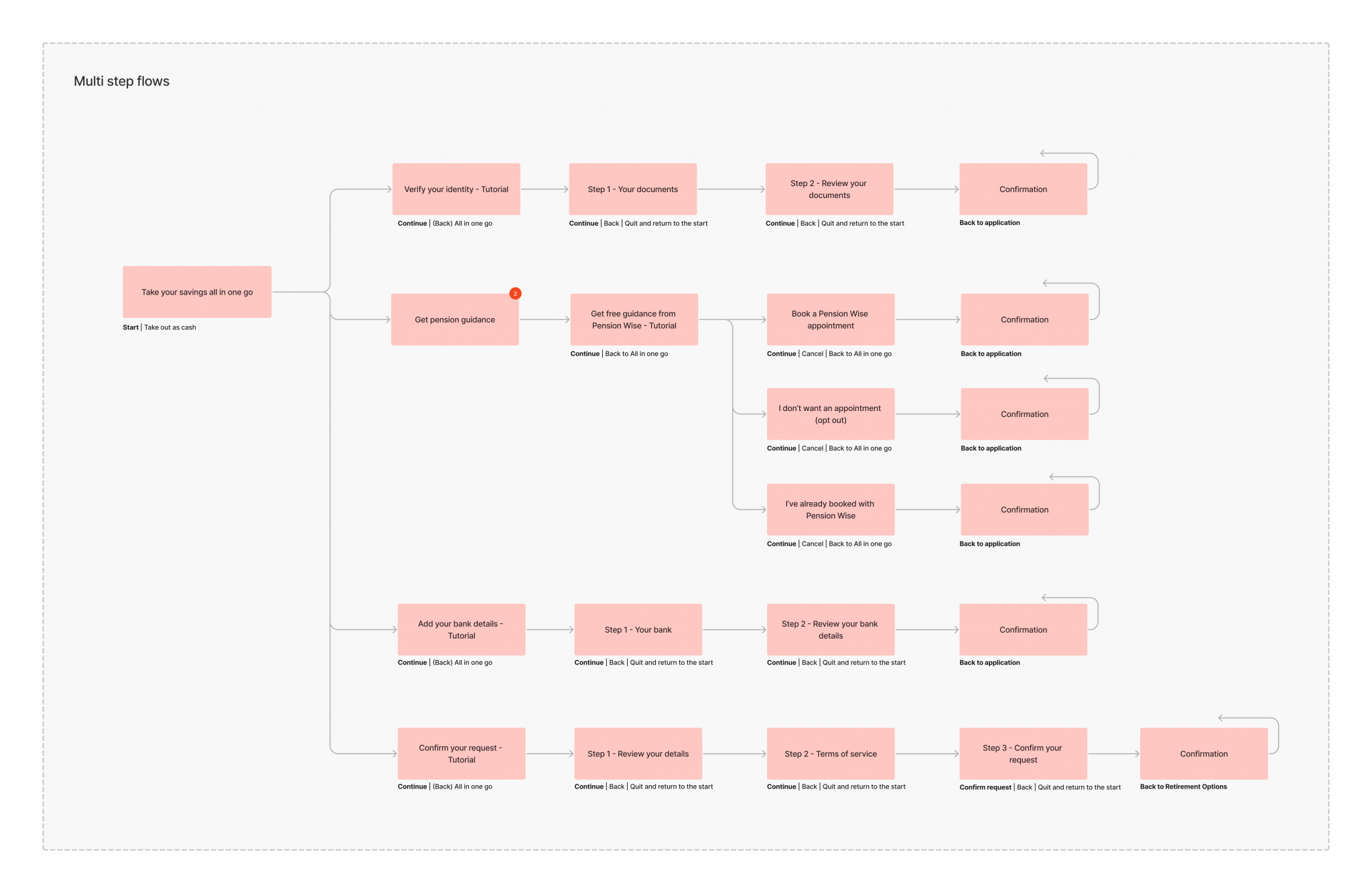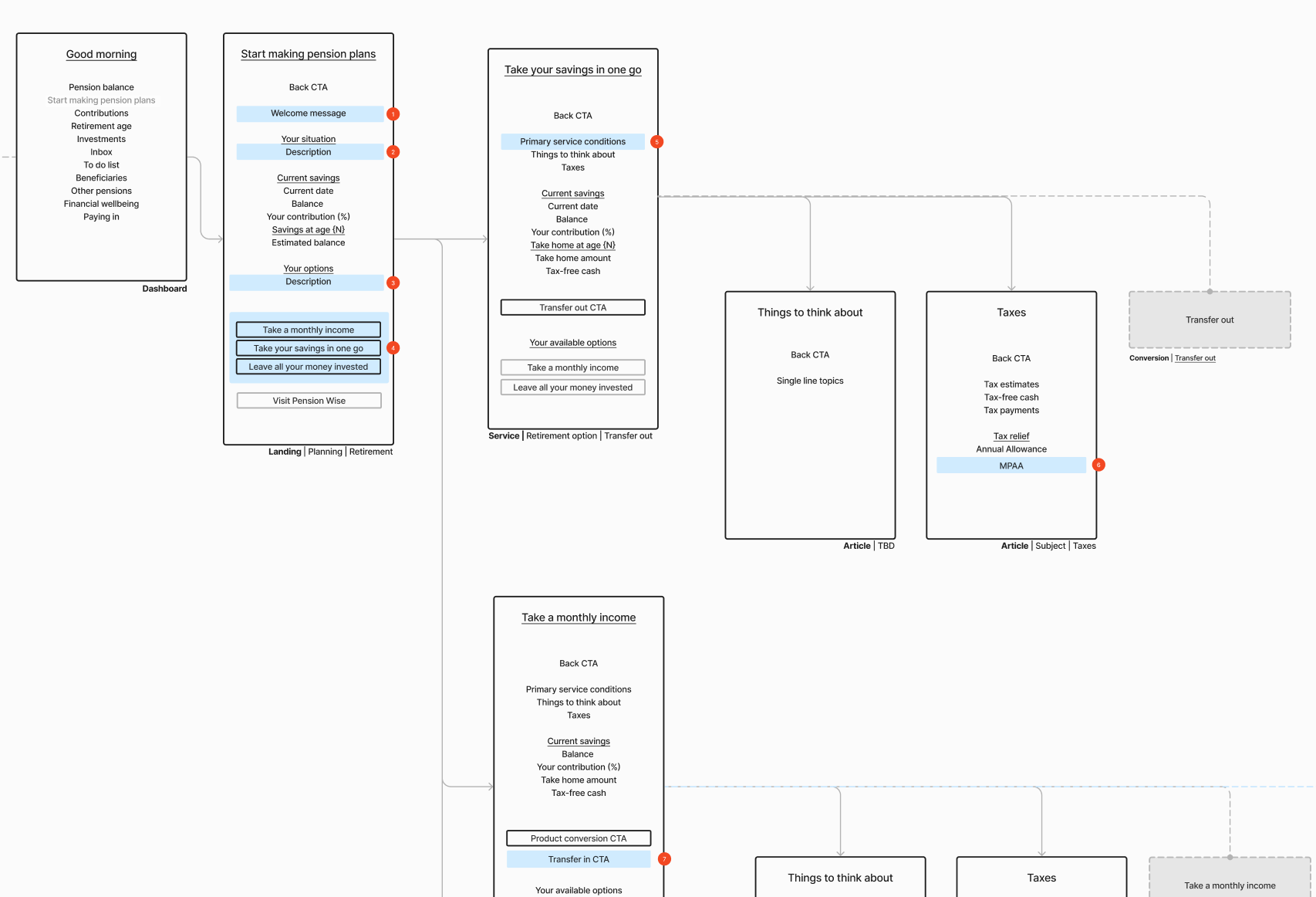 I used flows to unpack how subjects and terms would be presented to the user. This became a practical way to contextualise our taxonomy.