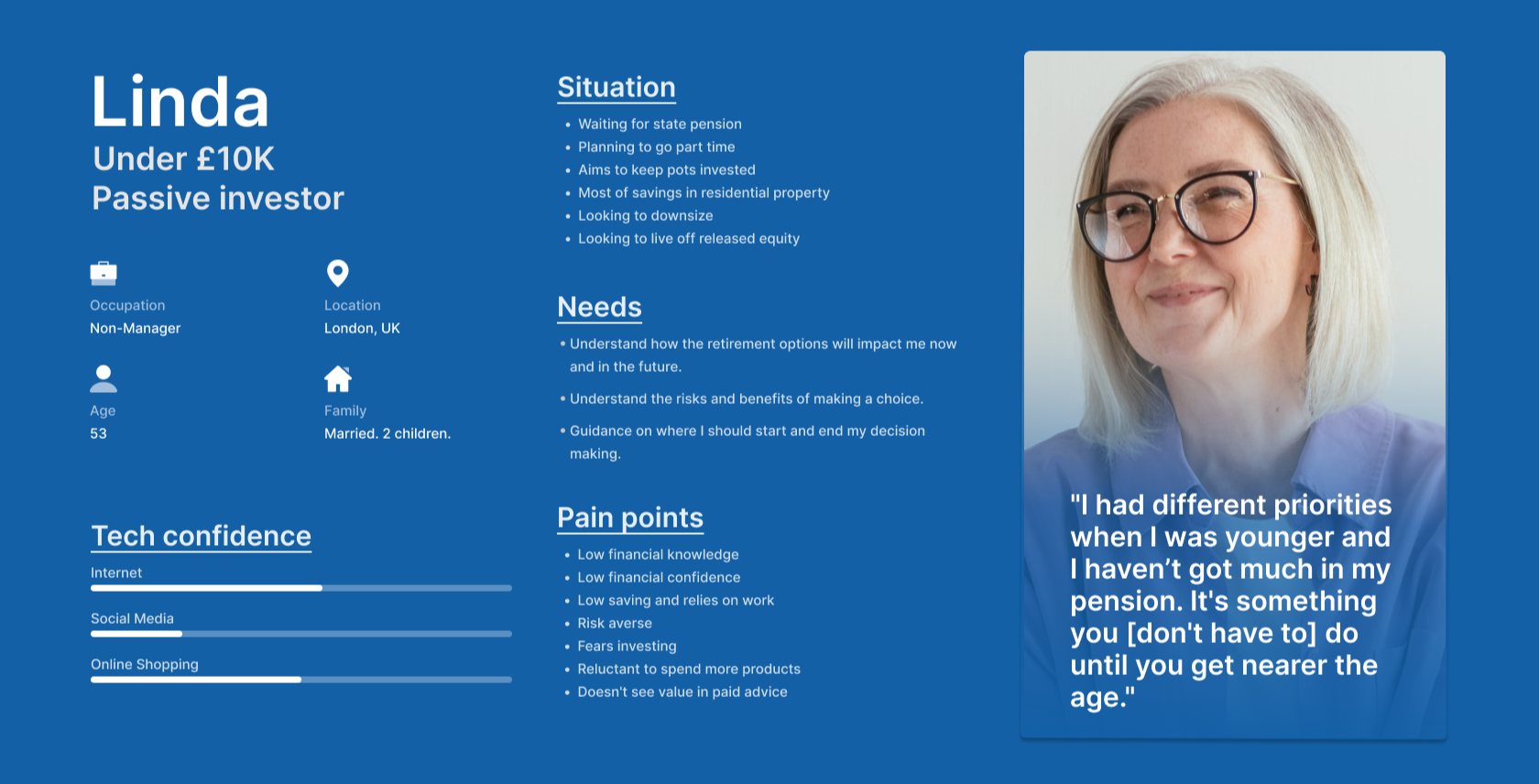 By collaborating with product, engineering, and compliance, I helped 1.5m customers make complex pension investment decisions.