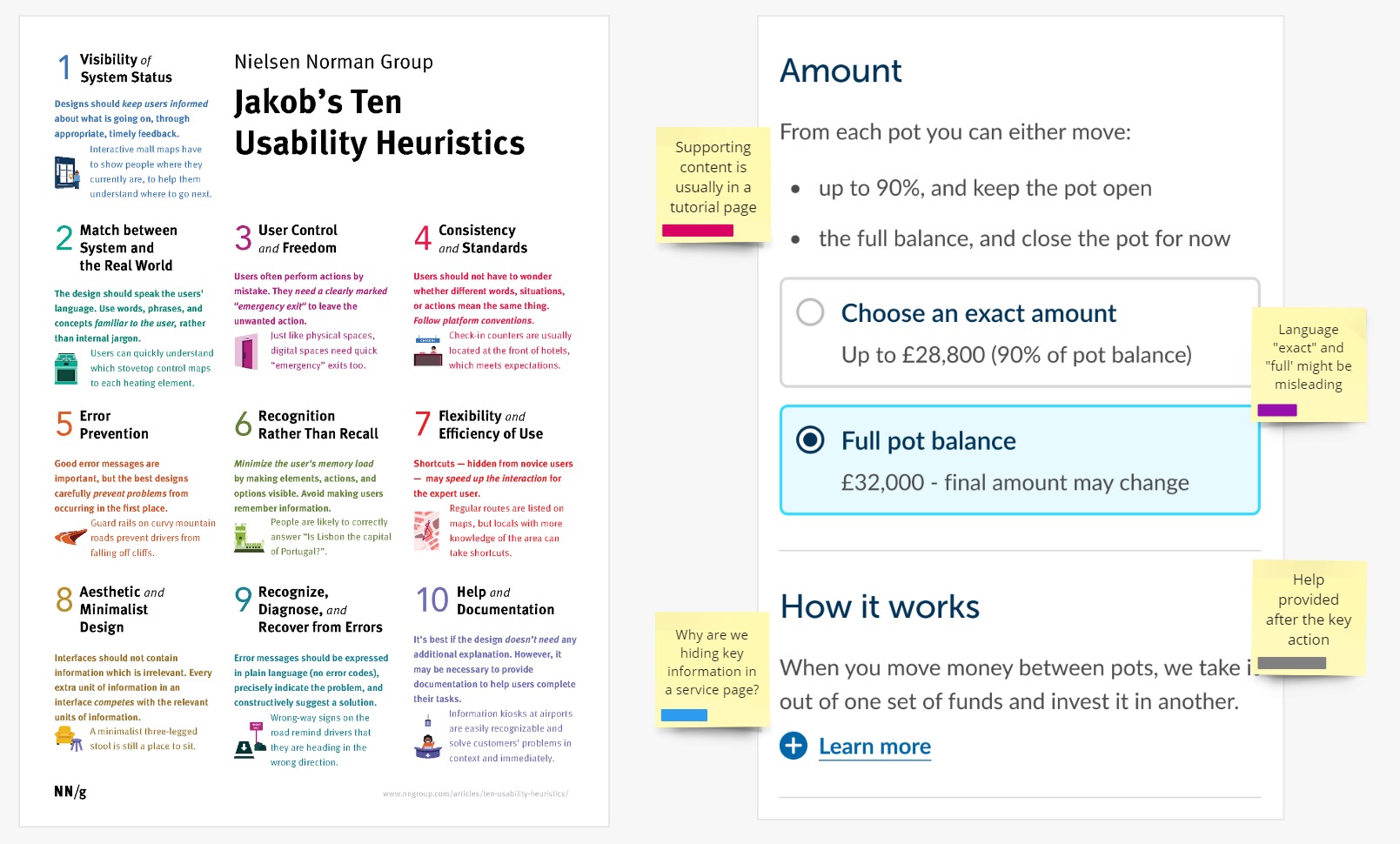 I led heuristic evaluations with the design team, unpacking use cases and screens and grouping observations using Gestalt principles.